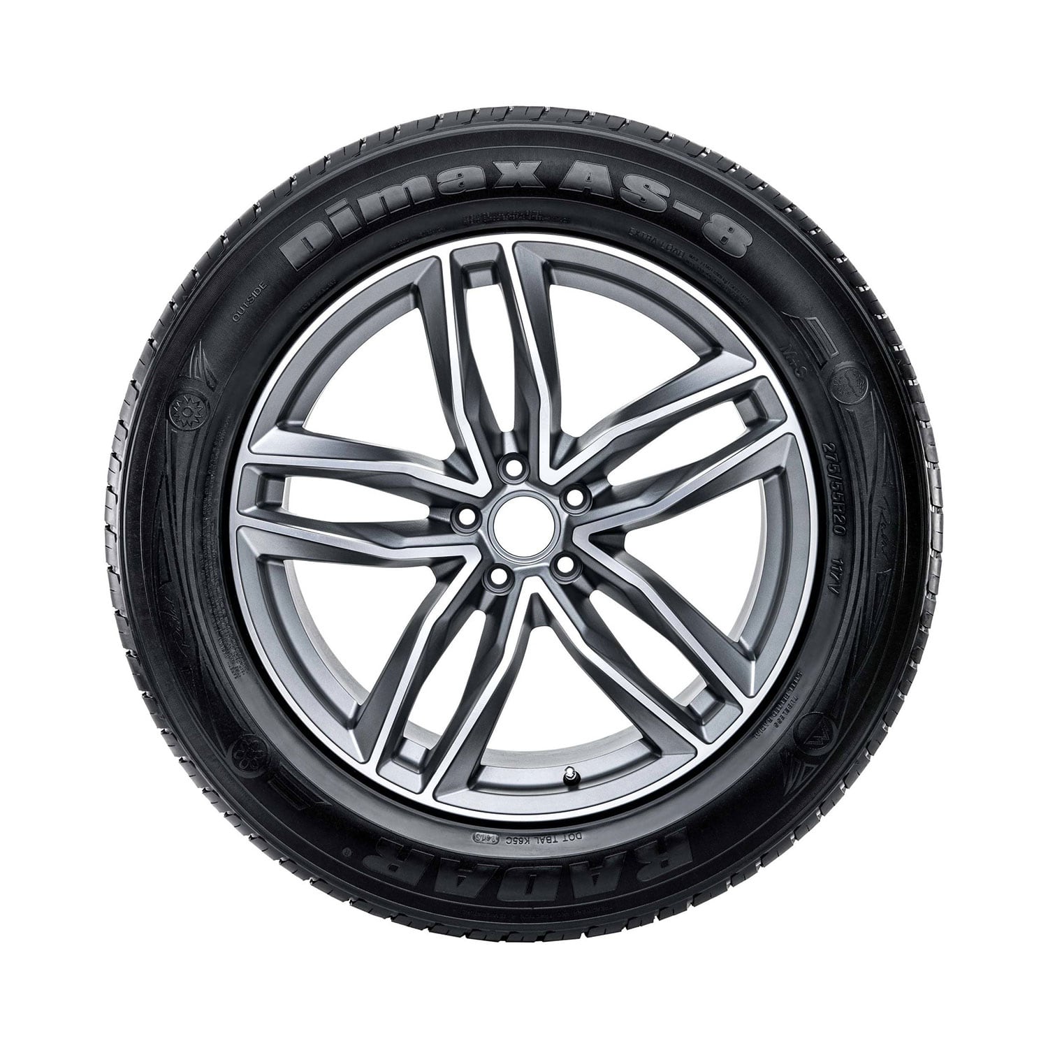 Radar Dimax AS 8 轮胎是一款适合高性能轿车和 SUV 的优质全季节运动旅行轮胎,具有运动外观和出色的操控性。该轮胎采用非对称胎面花纹,横向大凹槽可提供良好的牵引力和均匀磨损。横向细槽可在雪地和雪泥条件下提供增强的牵引力,并采用优化的胎面复合材料技术,可实现出色的行驶里程和性能。多种尺寸的 UTQG 等级高达 600 AA。
