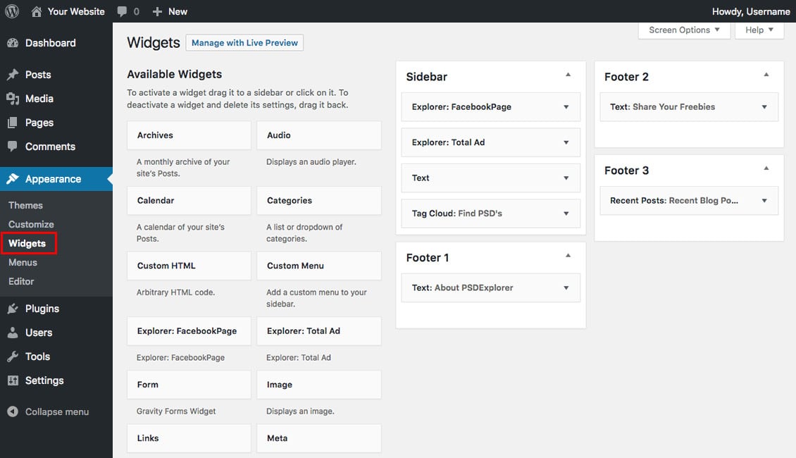 WordPress uses widgets to display content in the sidebar. To change widgets, open the dashboard and go to Appearance > Widgets. From here, you can add, remove, or reorder widgets by dragging and dropping, as well as customize the appearance of the sidebar using individual widget options.